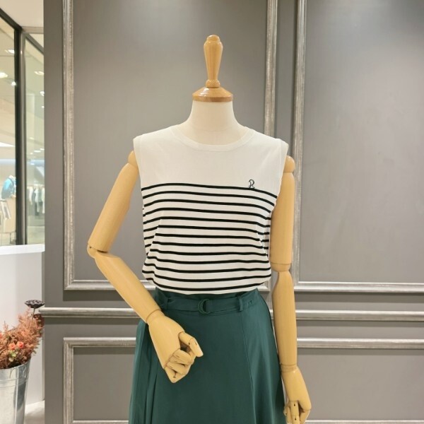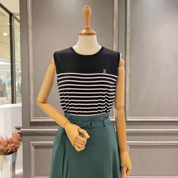 이너로 매치하시기 좋은 스트라이프 민소매 니트입니다