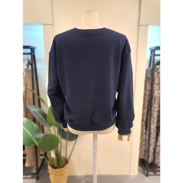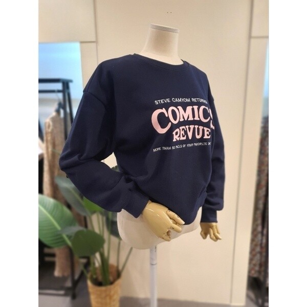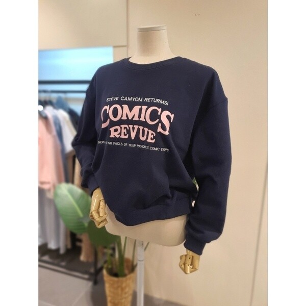 KETSP304NA_코믹스 자수 세미크롭 맨투맨 네이비