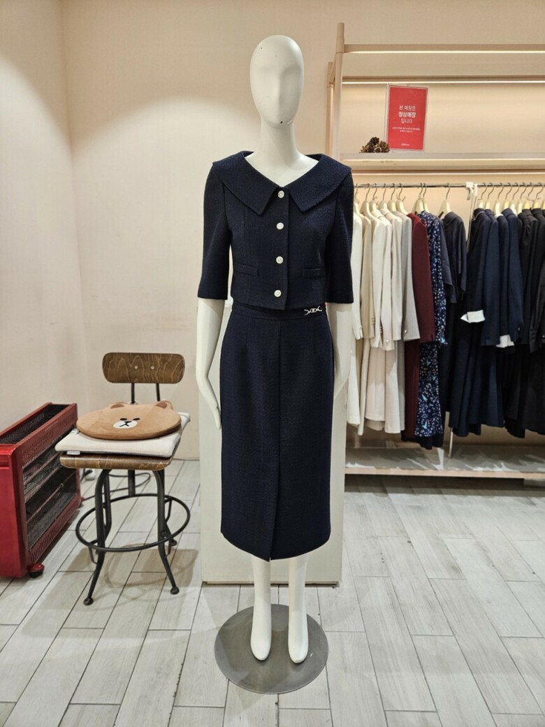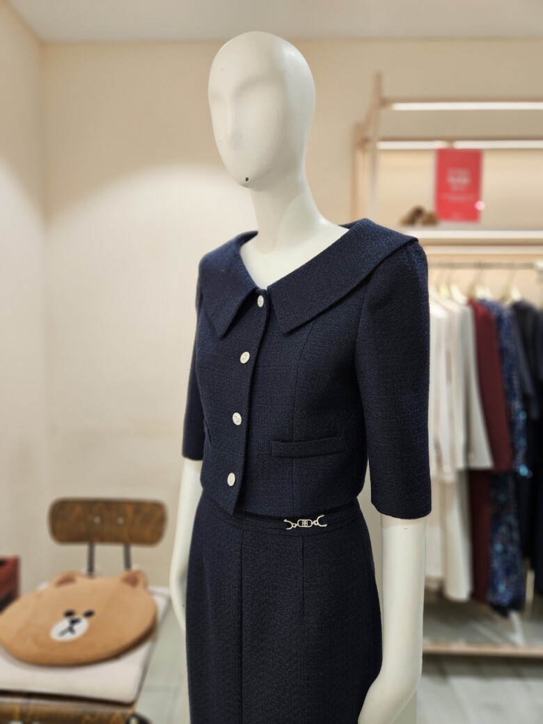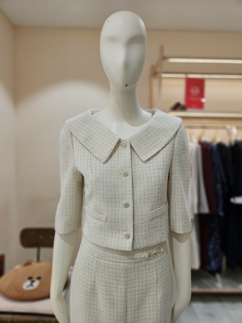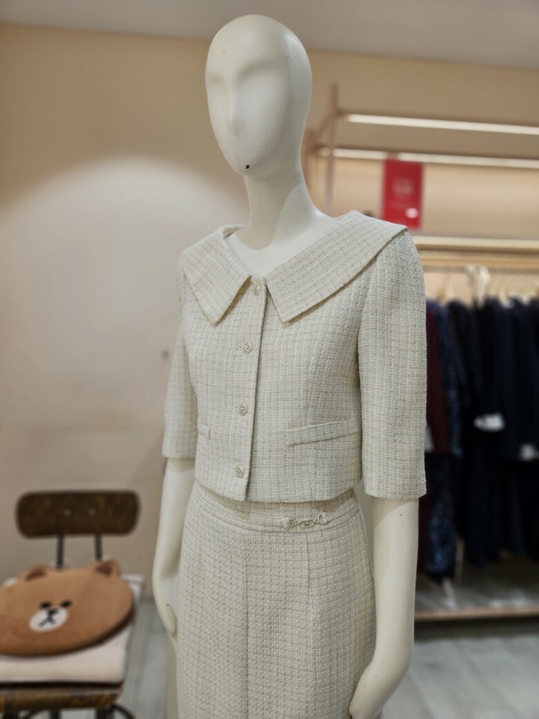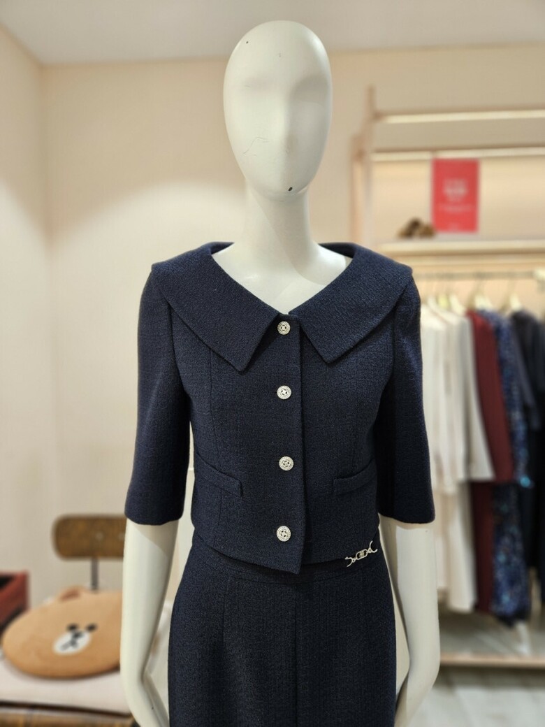 트위드 카라 크롭 칠부 재킷 GR4A0JK301