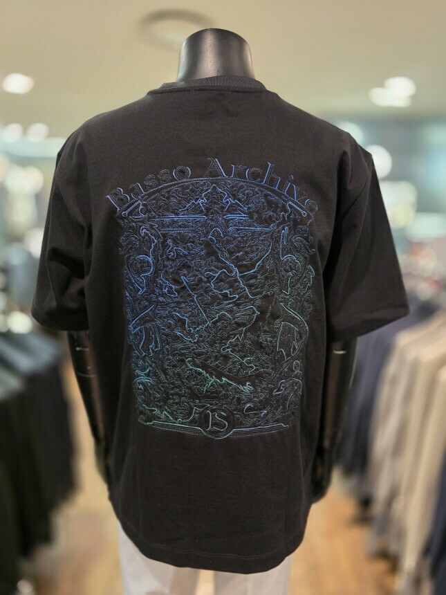 [바쏘옴므] Z2KR26A S/S 블렉 백프린팅 세미오버핏 반소매 티셔츠