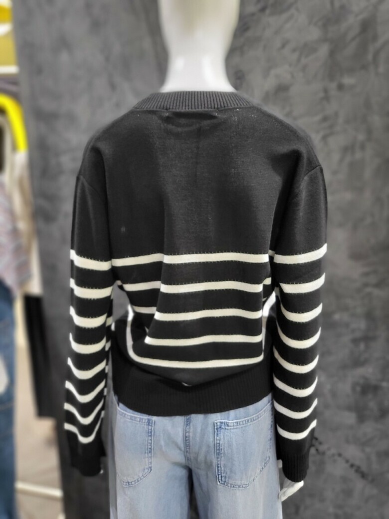 여유로운 실루엣의 스트라이프 니트 가디건입니다.