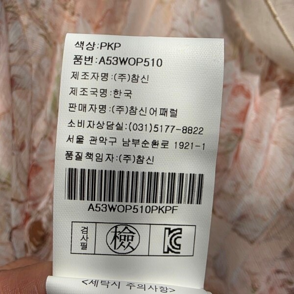 세탁방법 및 취급시 주의사항 : 드라이크리닝