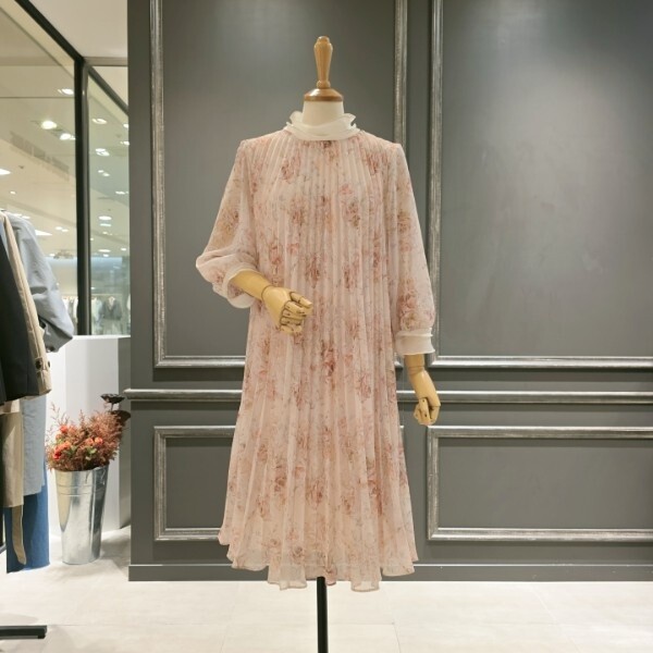 A53WOP510_플라워 패턴 주름 쉬폰원피스