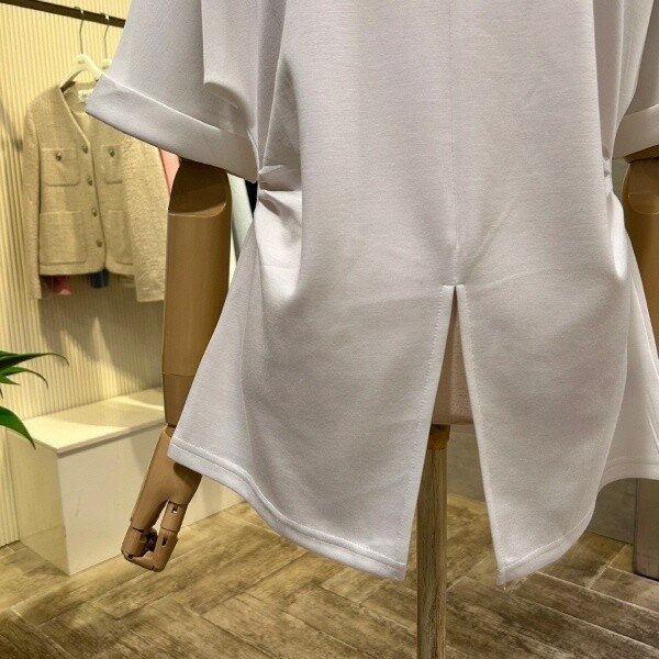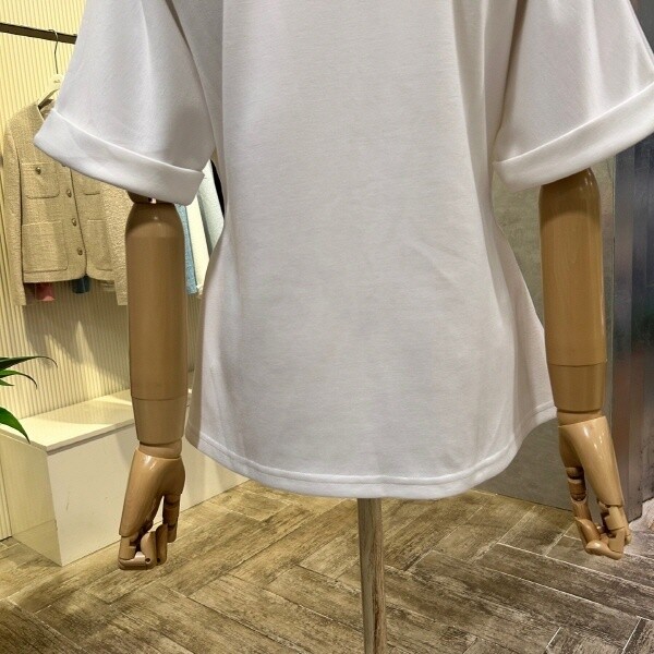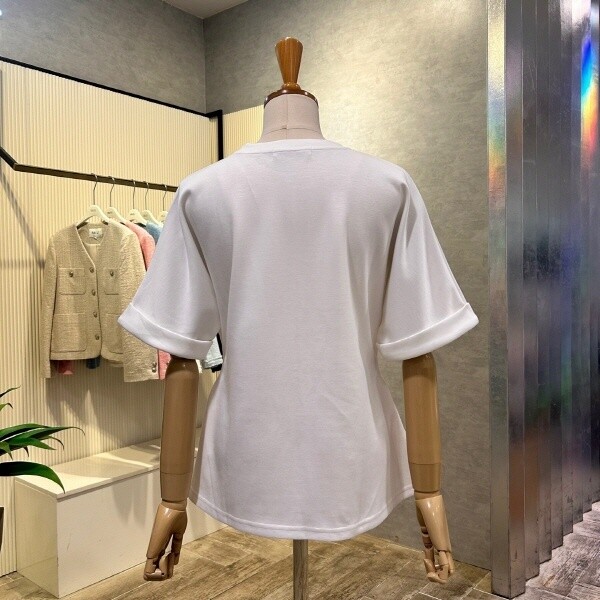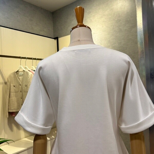 AOZ2HK36E_사이드 셔링 롤업 소매 티셔츠