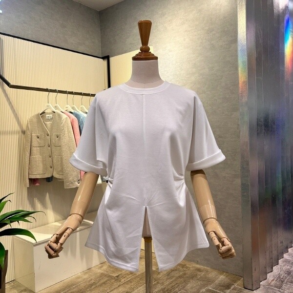 2025년 s/s 신상?사이드 셔링 롤업 소매 티셔츠 입니다.베이직한 디자인으로 코디 아이템 입니다.