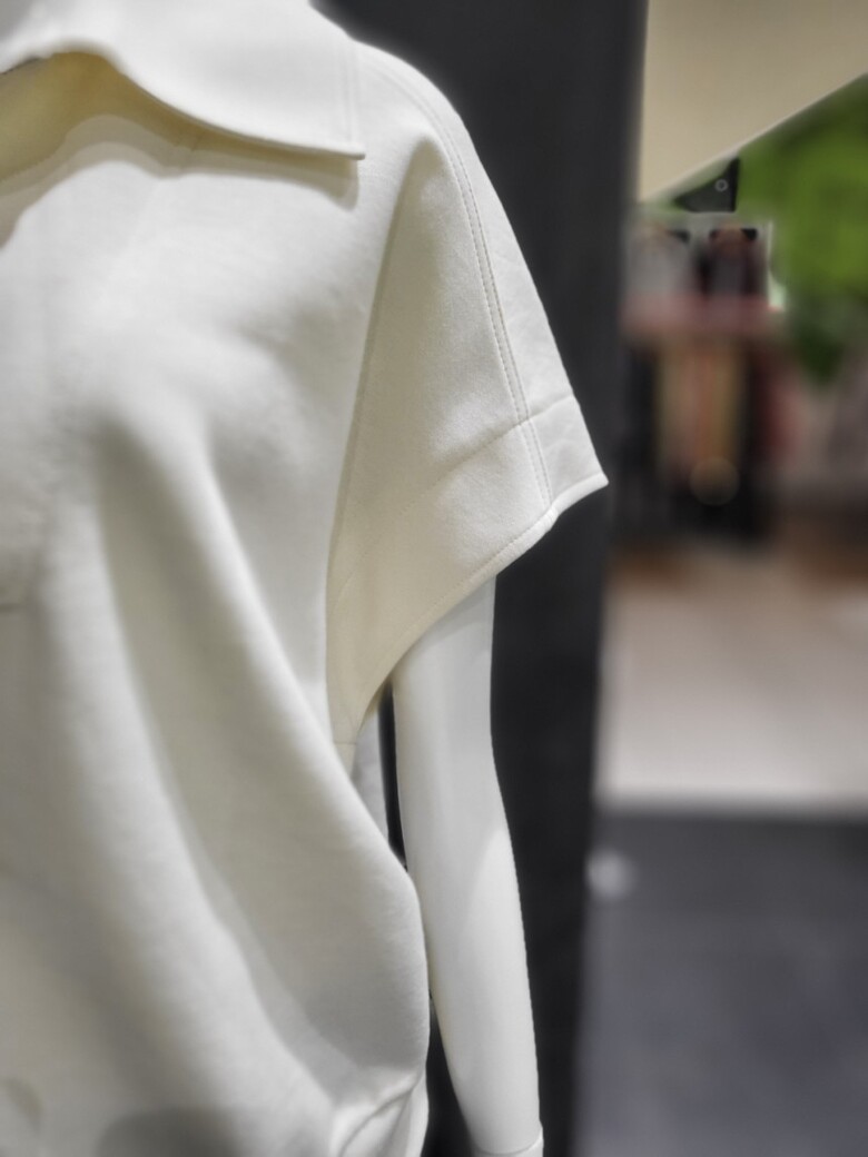 넉넉한 품과 소매를 살짝 덮는 어깨라인으로 체형 커버에 용이한 실루엣입니다.
