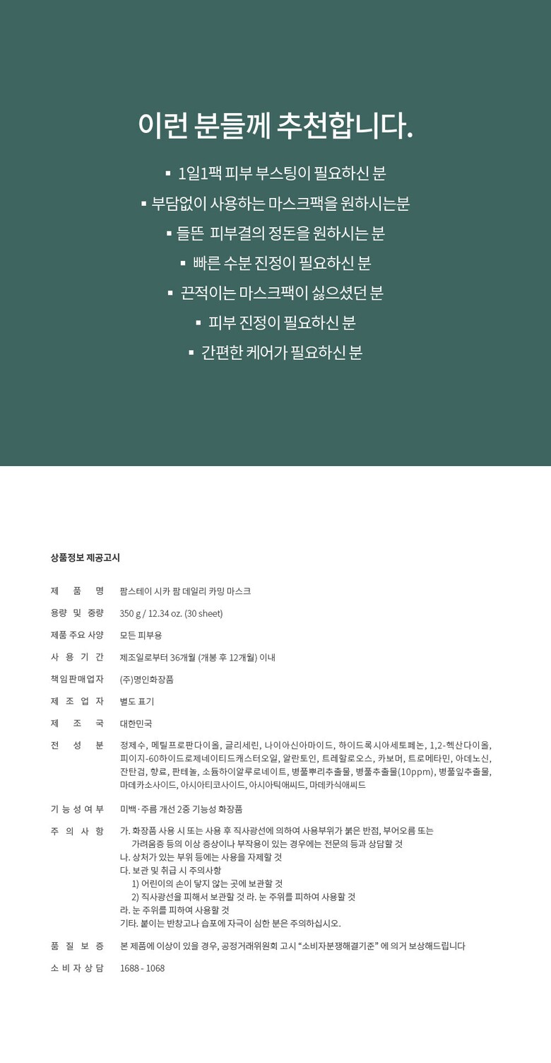 팜스테이 시카 팜 데일리 카밍 마스크 30매
