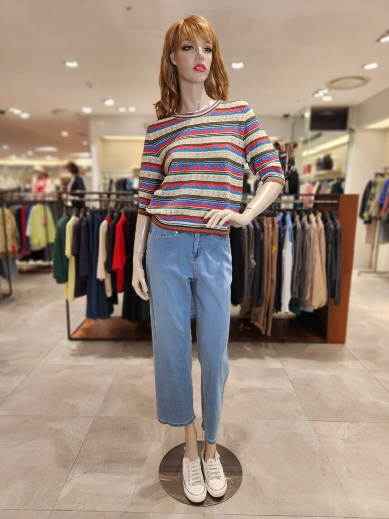 7.니트류는 자가드 프린트 기법으로 제작되어 앞부분에 예쁜 프린트처리가 되어 있습니다