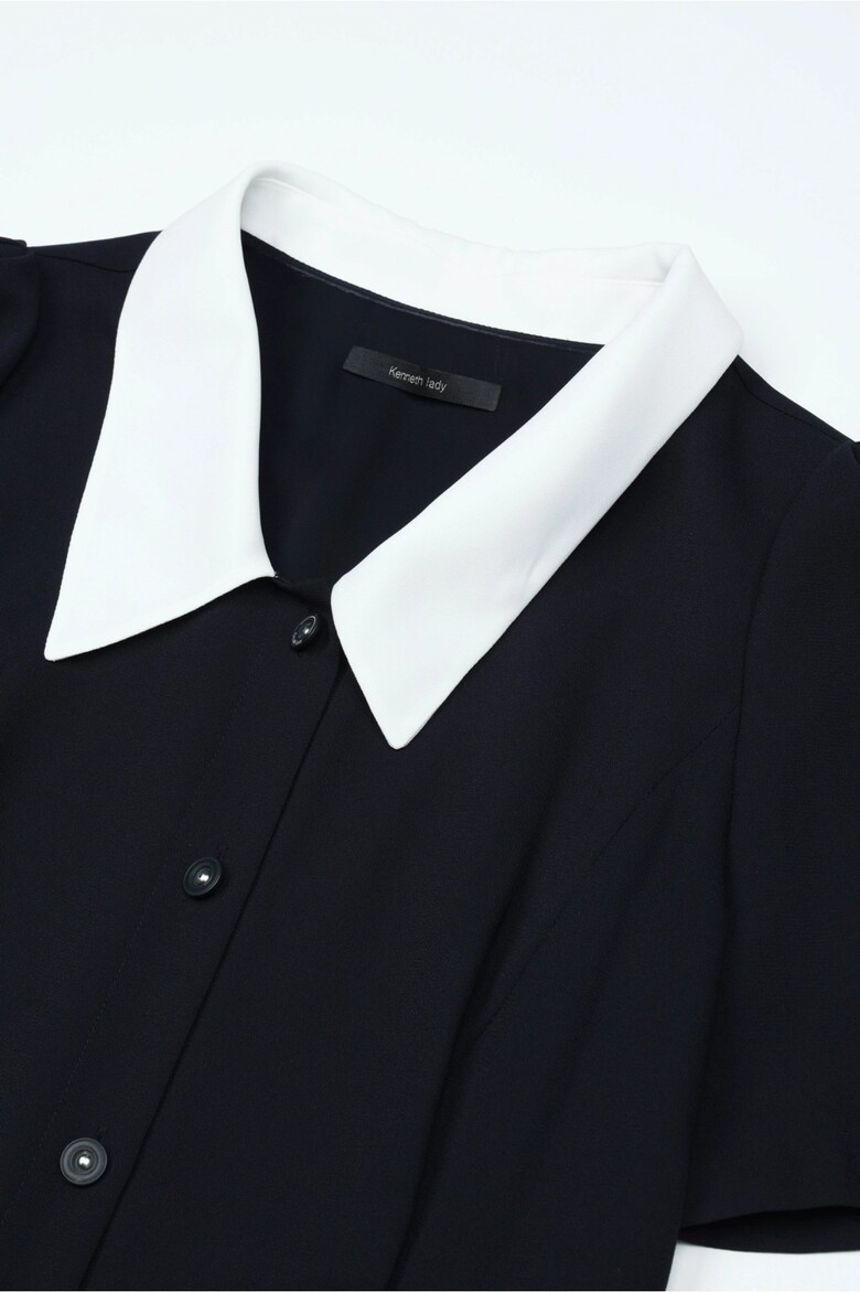 배색 디테일이 들어간 카라가 있는 디자인으로 깔끔하게 착용하실 수 있습니다.