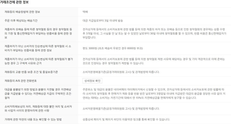 | 8. 품질보증기준 | 관련법 및 소비자분쟁해결기준에 따름 |