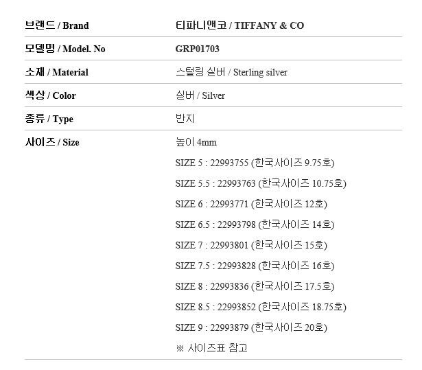 티파니앤코 반지 22993798 (GRP01703) 티파니 1837 네로우 6.5호 실버 여성반지 당일발송