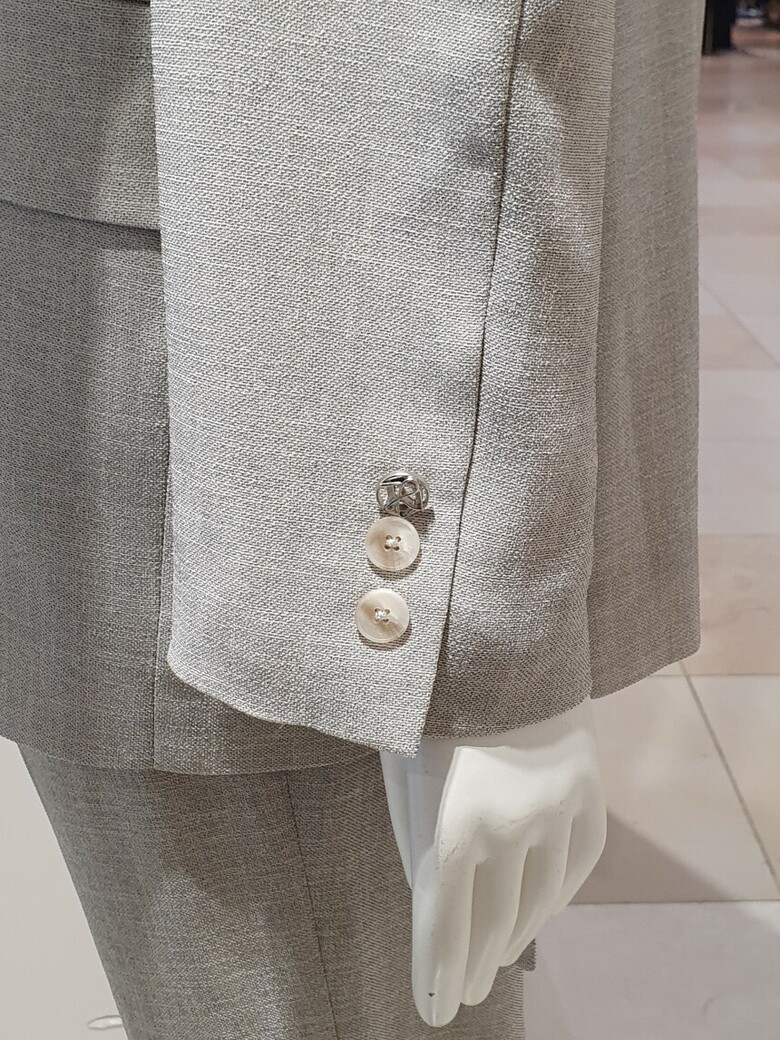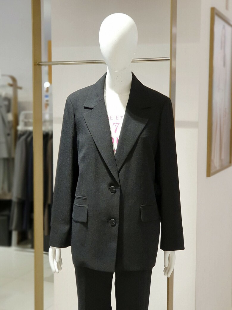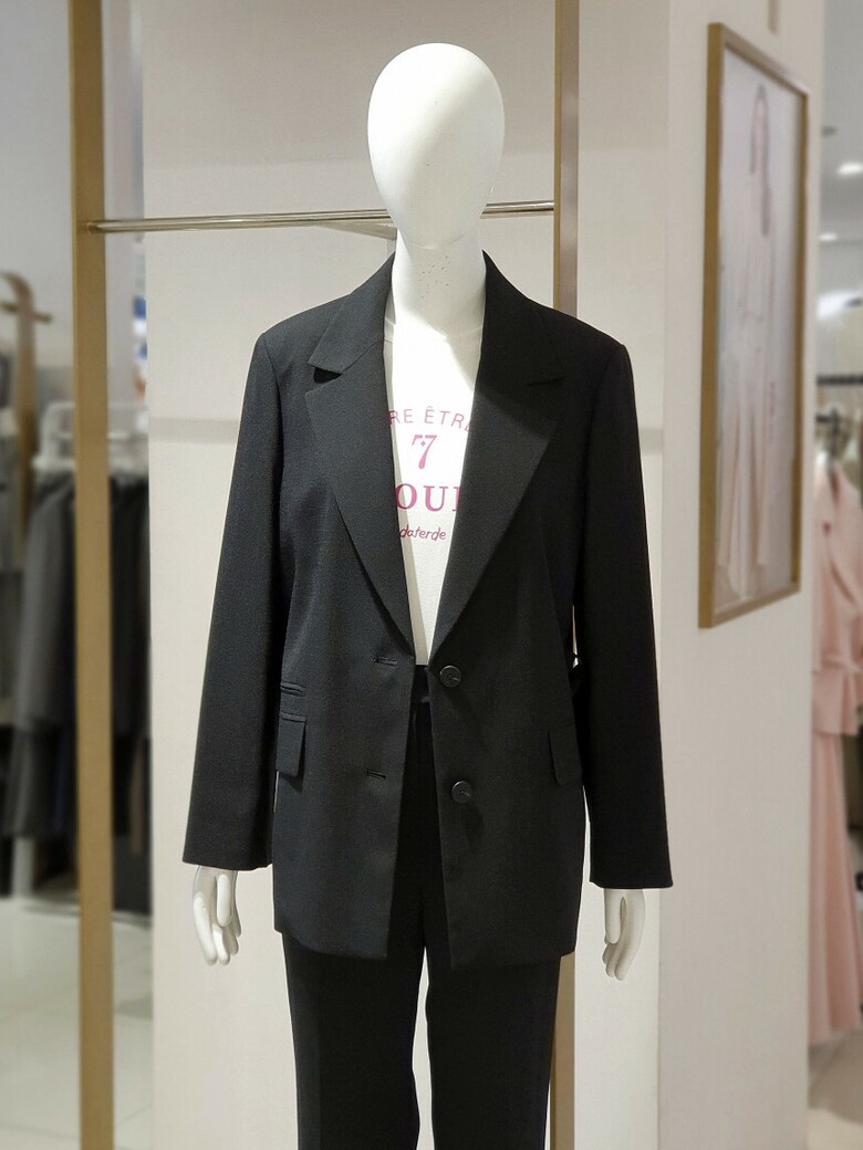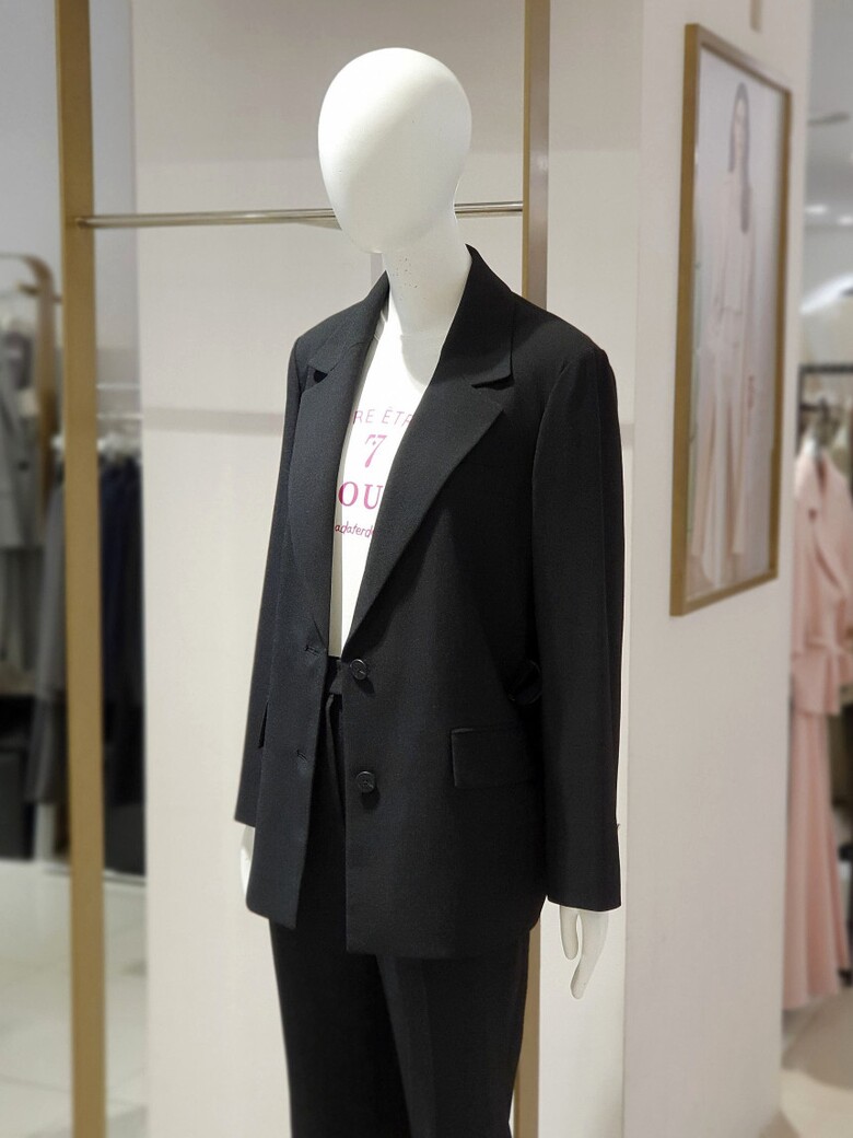 테일러드 칼라 넥 라인에 싱글 투 버튼 클로징 가능하며