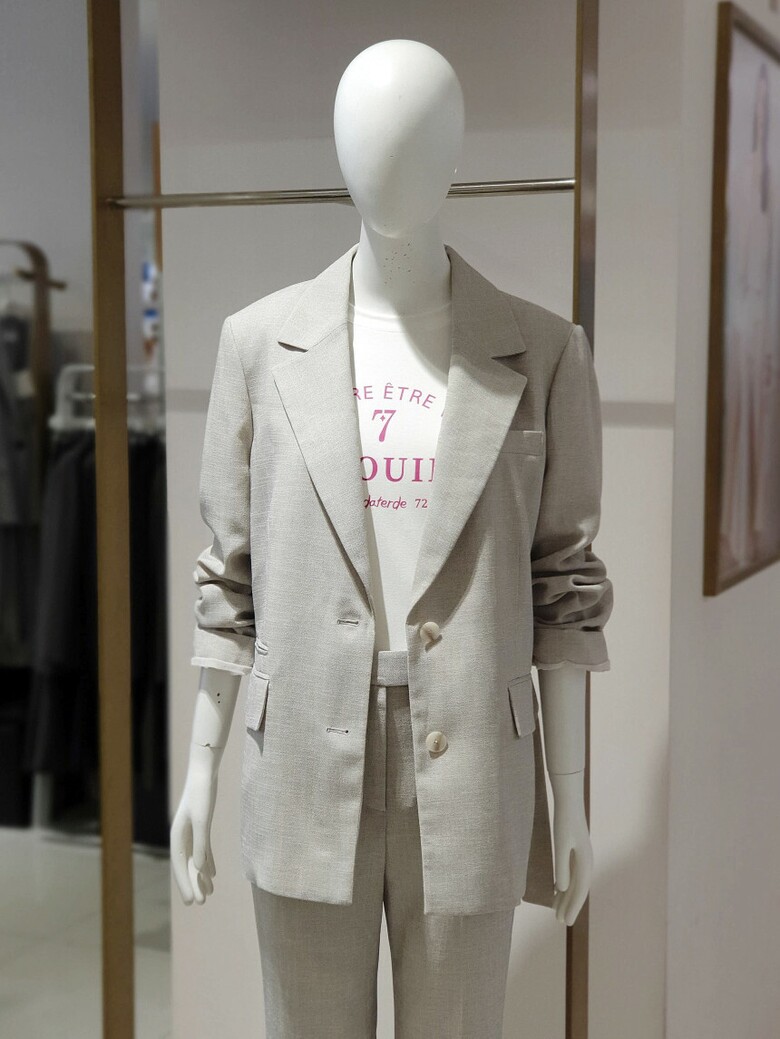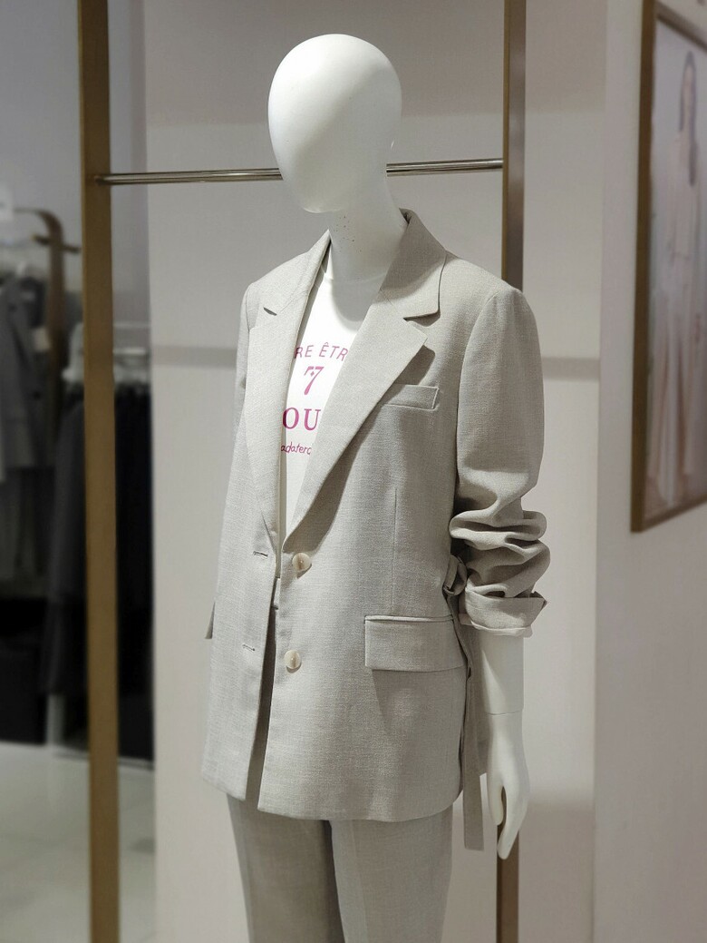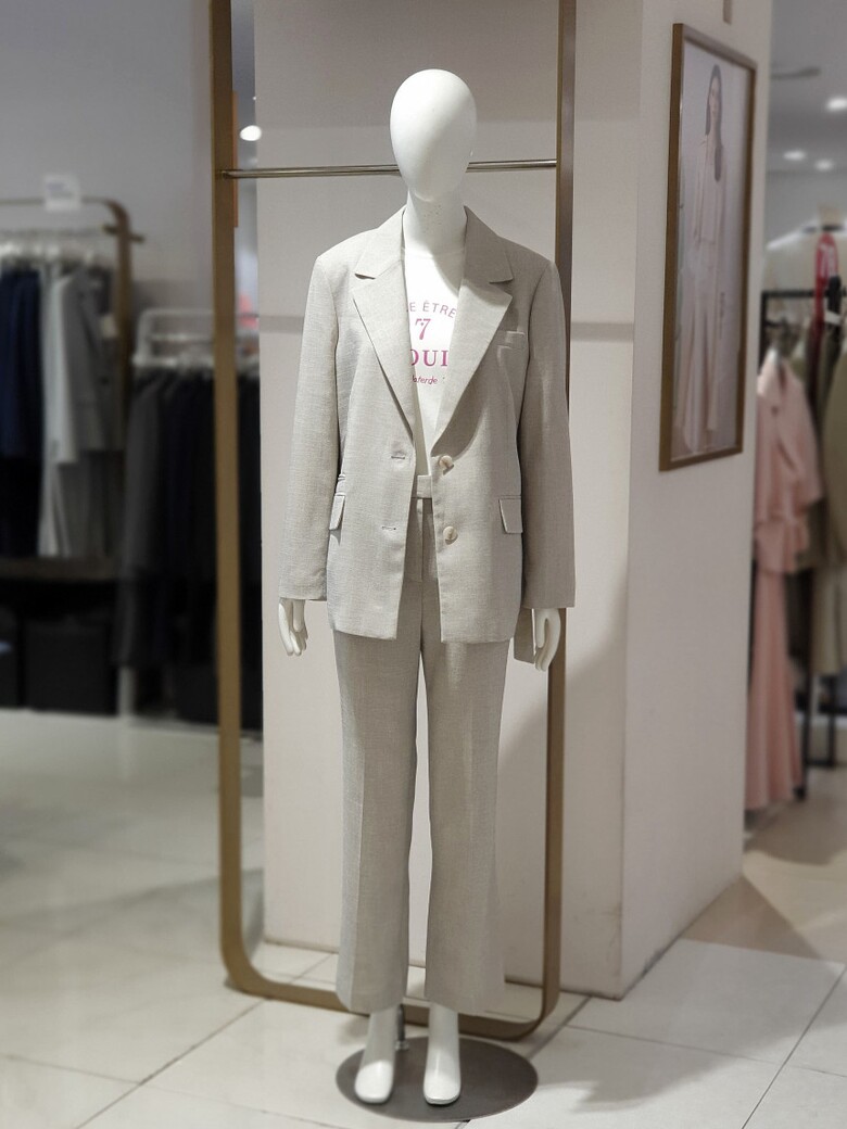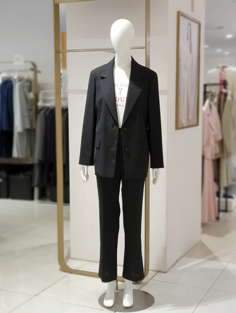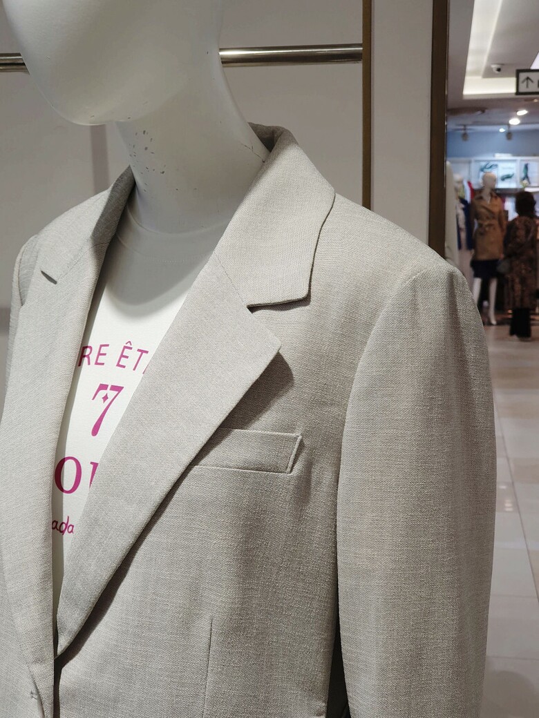 테일러드 칼라 넥 라인에 싱글 투 버튼 클로징 가능하며