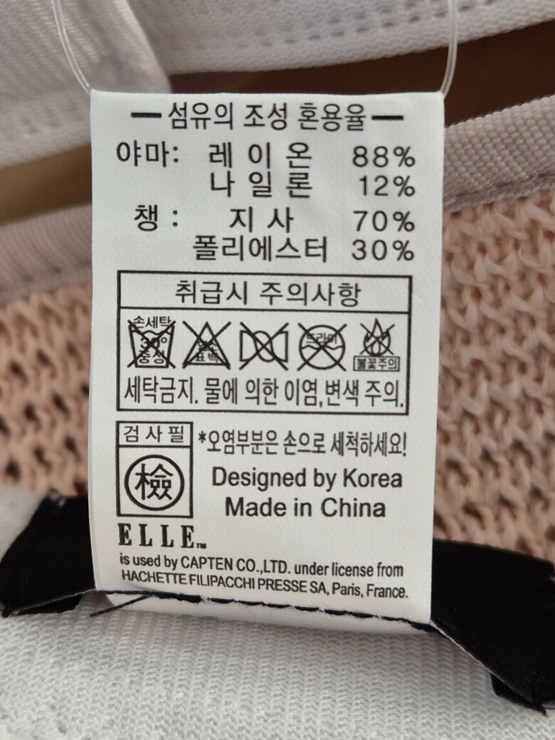 | 2. 소재 | 야마:레이온88%,나일론12% 챙:지사70%,폴리에스터30% |