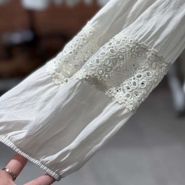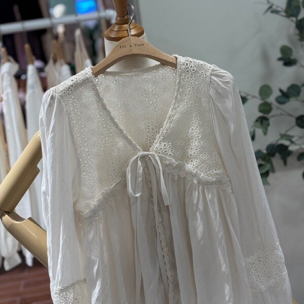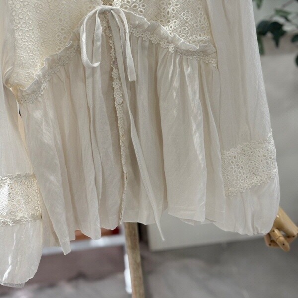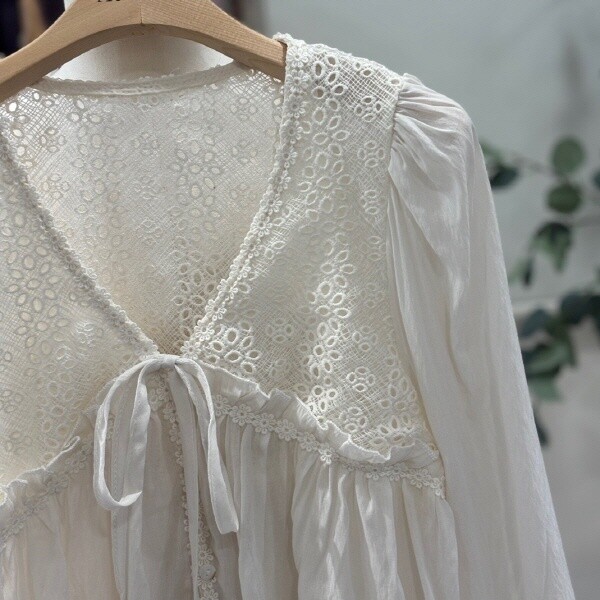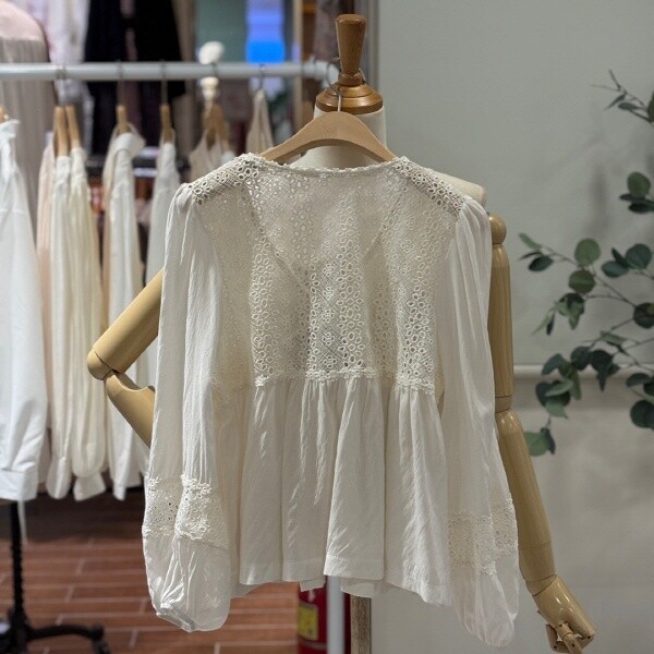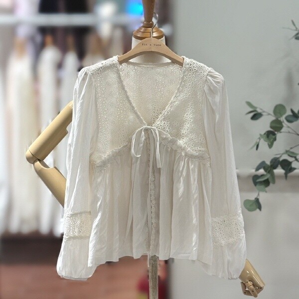 FTABL1293_레이스펀칭 리본블라우스