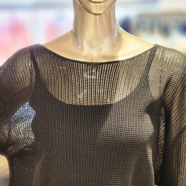 BFM5SNKO9050_밑단밴딩 이너배색 그물니트