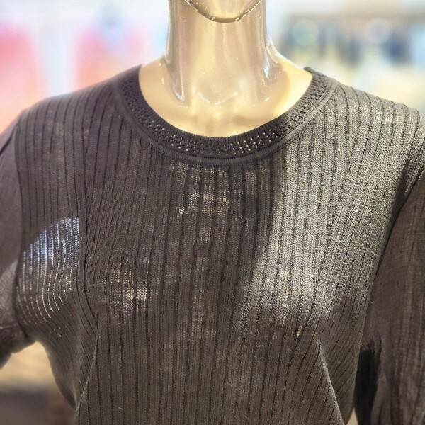 BFM5PNKO9080_5부소매 세로골지 라운드 니트