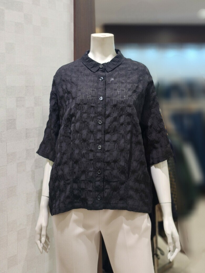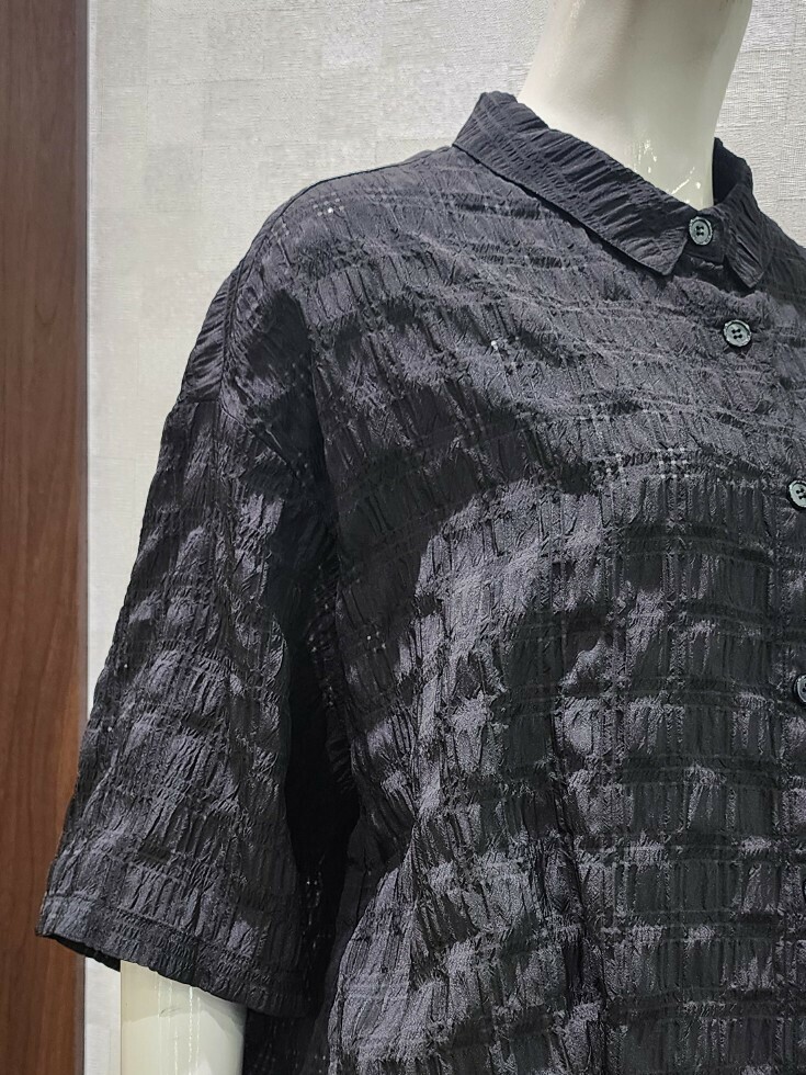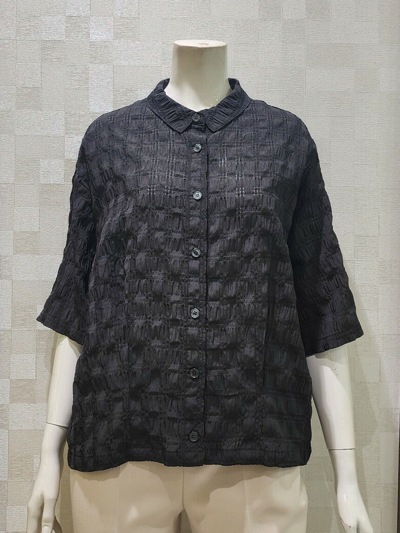 [벨라디터치] V1E2BL22 시어서커 블랙 블라우스
