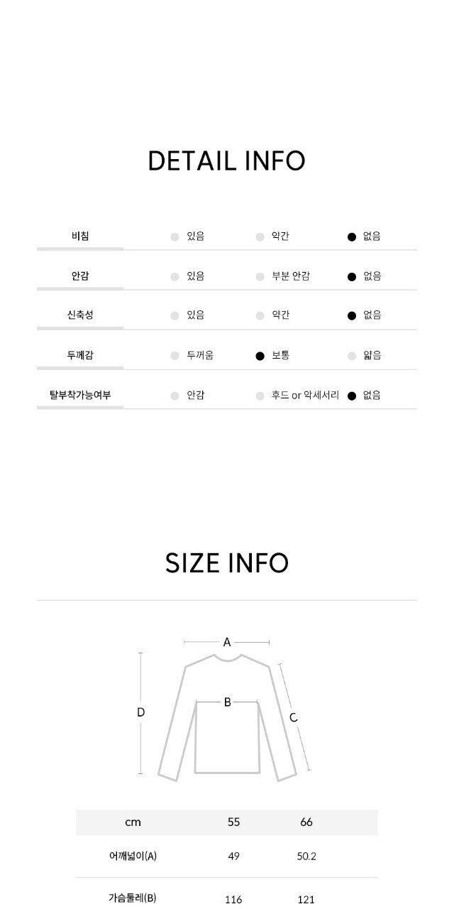 • 처음 배송된 상품상태와 다를 경우(세탁/착용 후 외출하신 경우) 반품이 불가합니다.