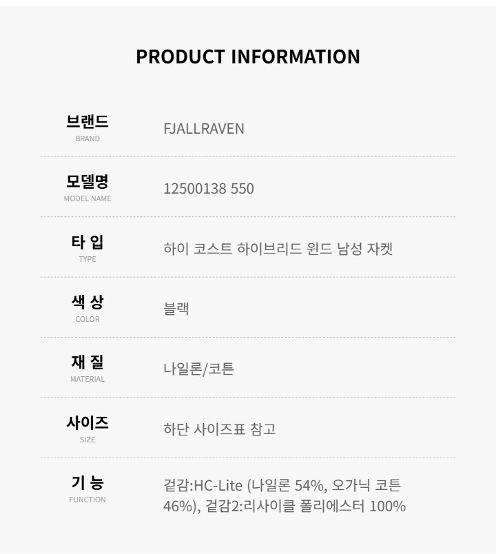 피엘라벤 자켓 12500138 550 하이 코스트 하이브리드 윈드 남성자켓 당일발송