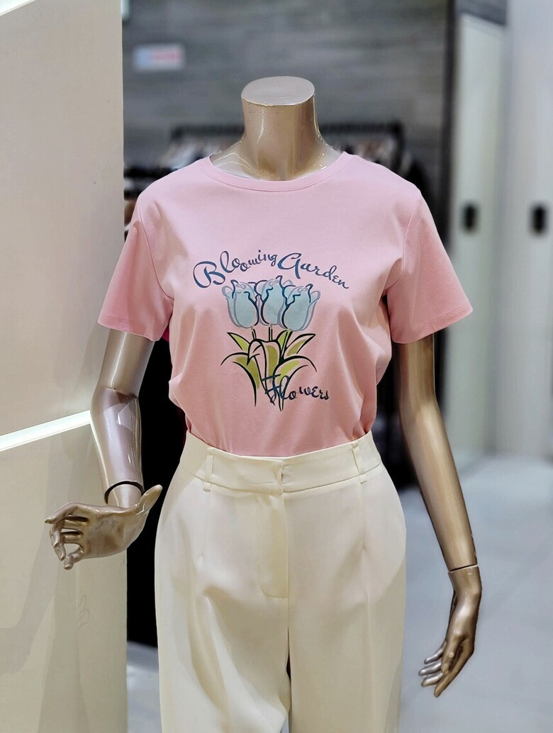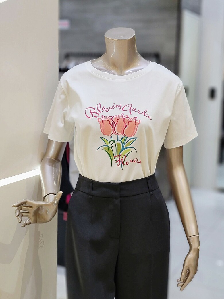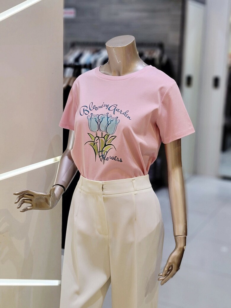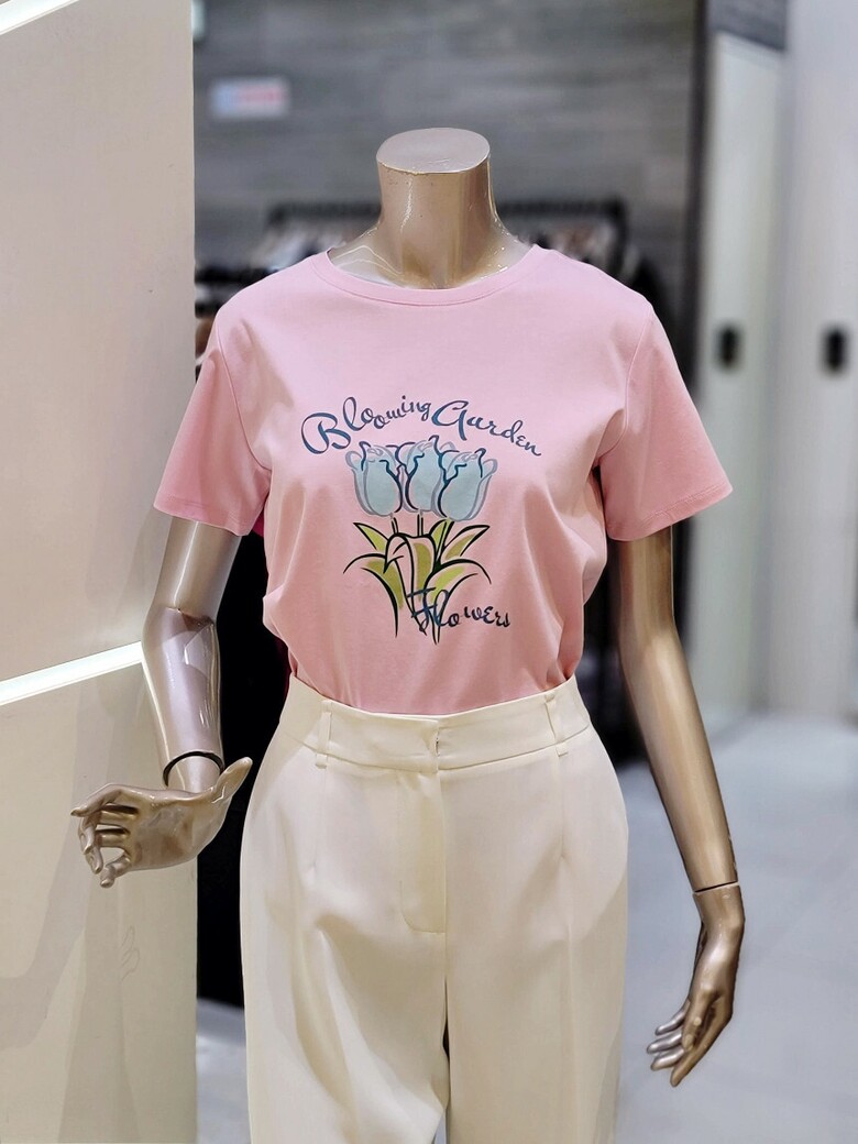 플라워 프린팅 코튼 티셔츠 MYBAJI4380
