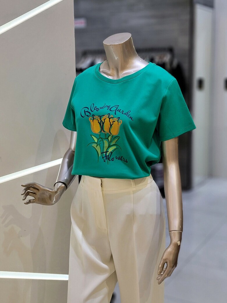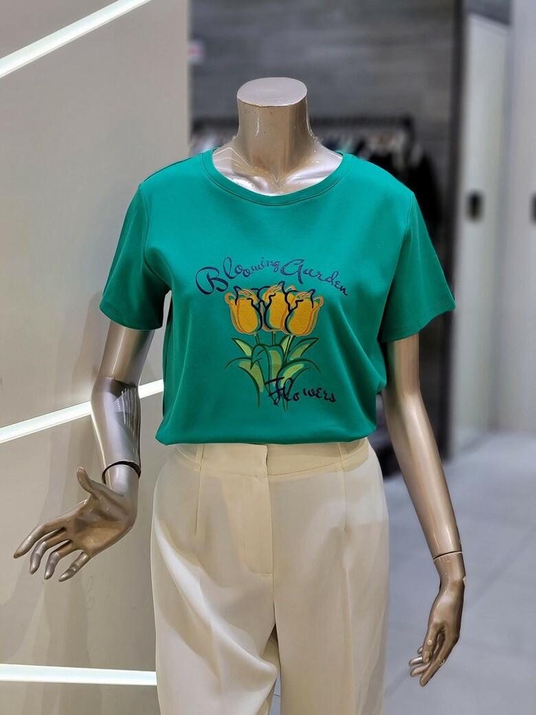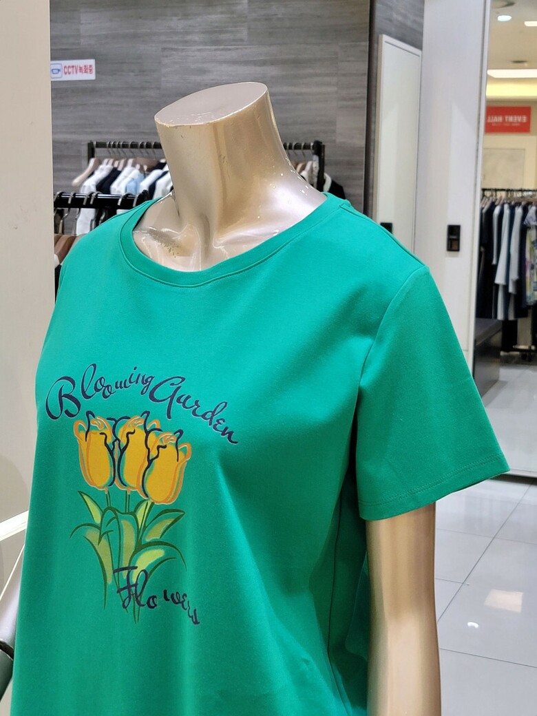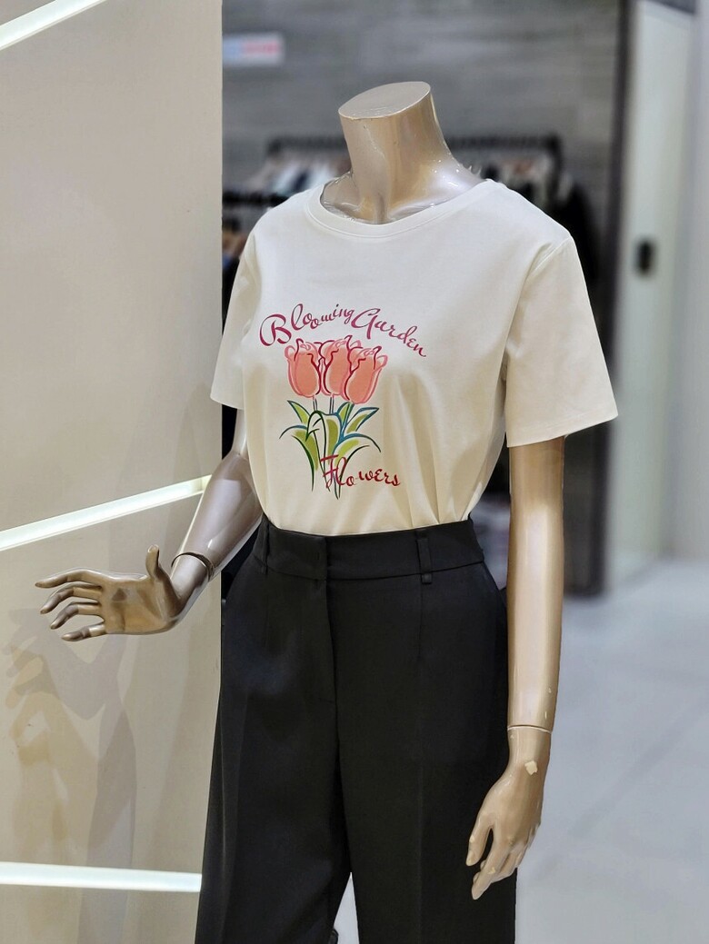 플라워 프린팅 코튼 티셔츠 MYBAJI4380