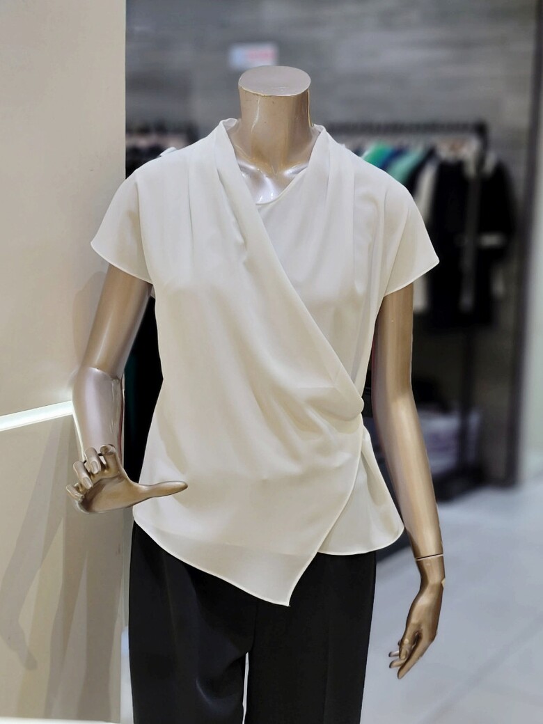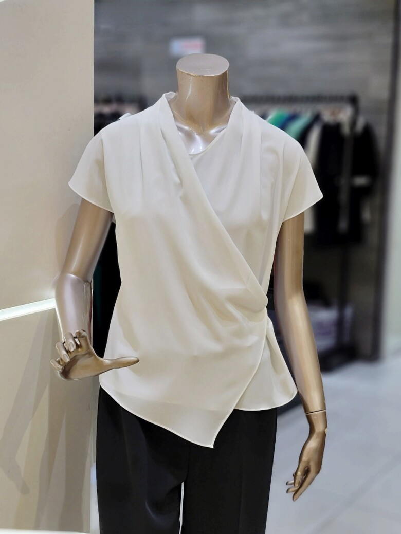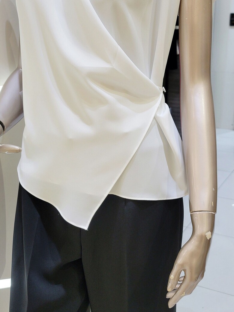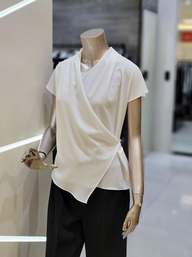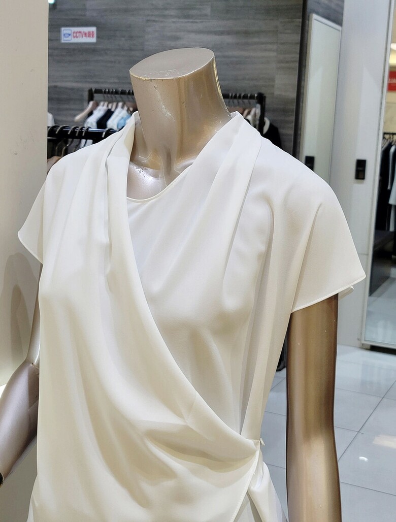 랩 스타일의 프런트 드레이프 패널로 입체감 있는