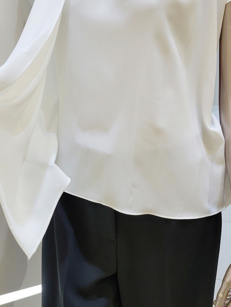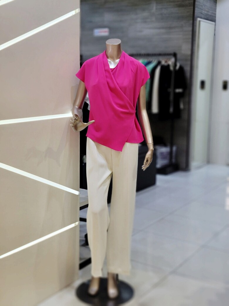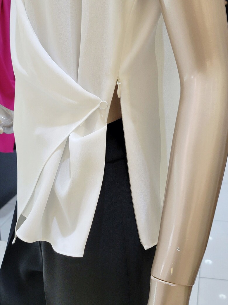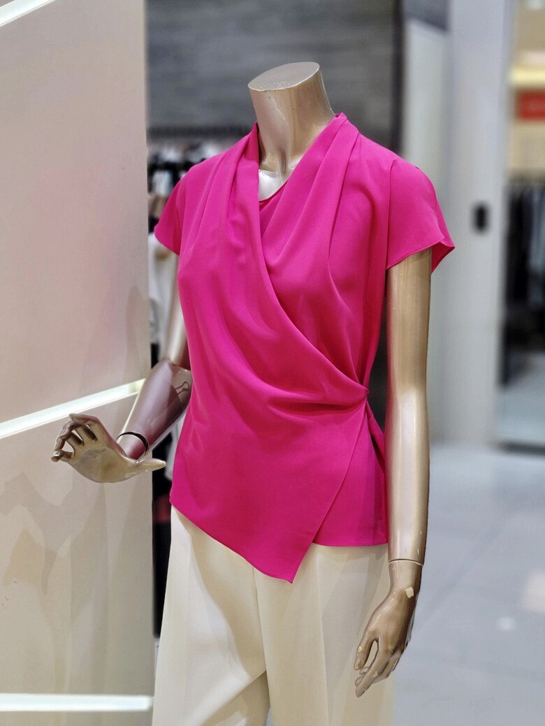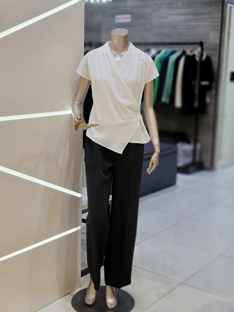 랩 스타일의 프런트 드레이프 패널로 입체감 있는