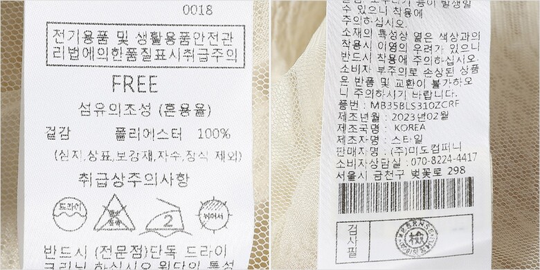 | 1. 제품 소재 (섬유의 조성 또는 혼용률을 백분율로 표시, 기능성인 경우 성적서 또는 허가서) | 겉감-폴리에스터100% |