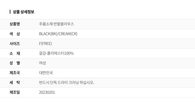 | 2. 색상 | 색상:BLACK(BK)/CREAM(CR) |