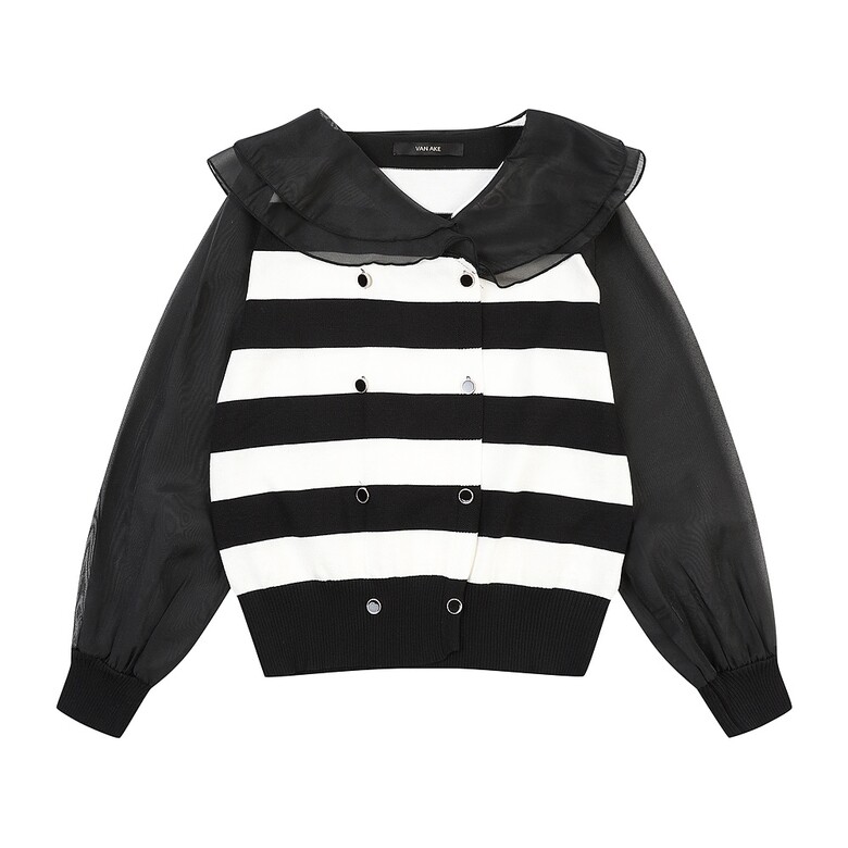 [반에이크] 프릴 시스루배색 니트_VB34KTQ302Z