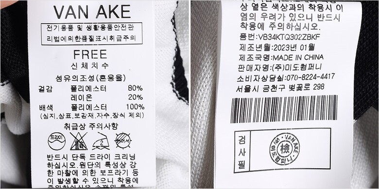 | 1. 제품 소재 (섬유의 조성 또는 혼용률을 백분율로 표시, 기능성인 경우 성적서 또는 허가서) | 겉감-폴리에스터80% 레이온20% 배색-폴리에스터100% |