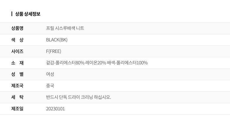 | 6. 세탁방법 및 취급시 주의사항 | 상세페이지 참조 |