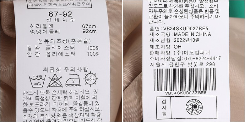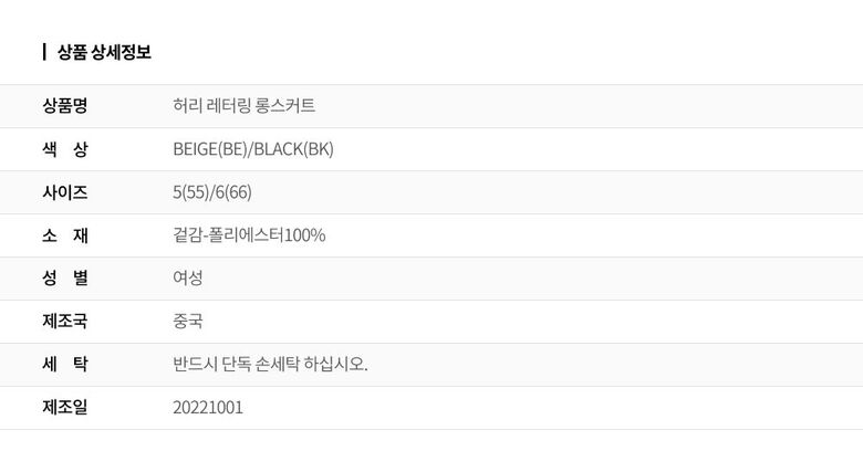 | 6. 세탁방법 및 취급시 주의사항 | 상세페이지 참조 |