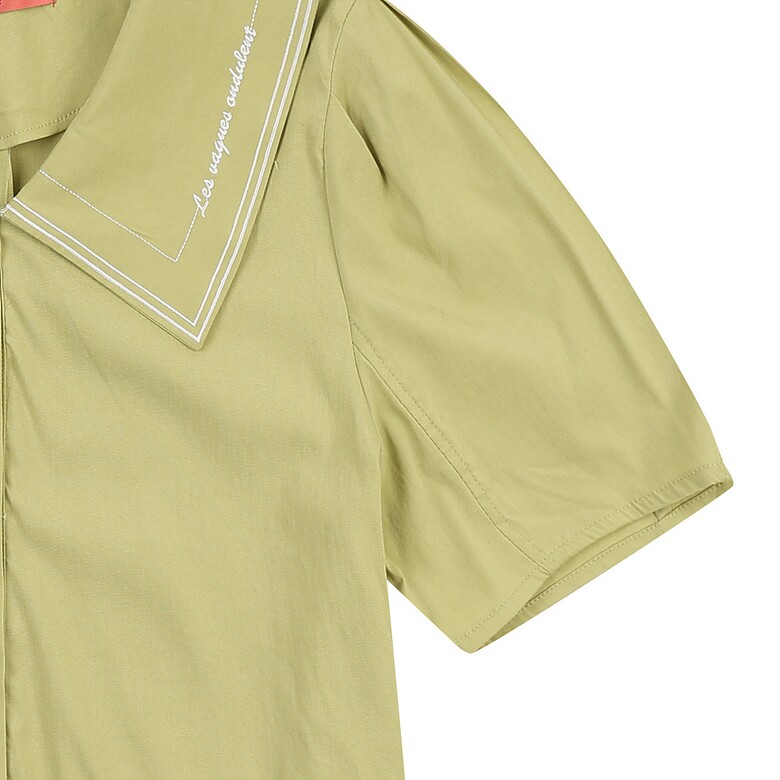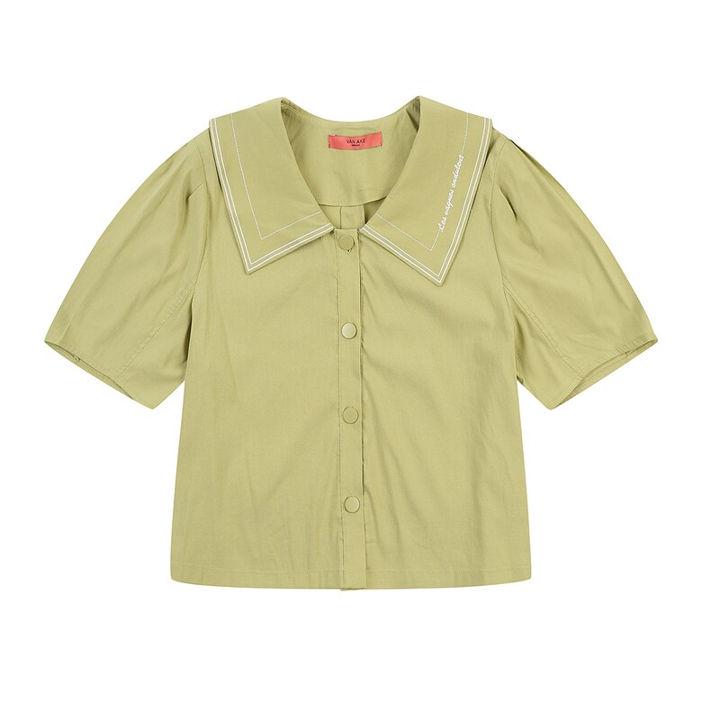 [반에이크] 레터링자수 카라 반팔블라우스_VB36BLMD02Z
