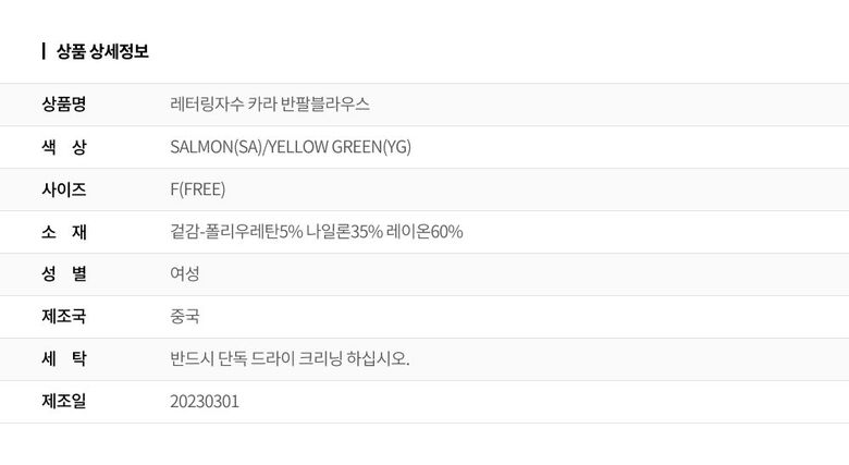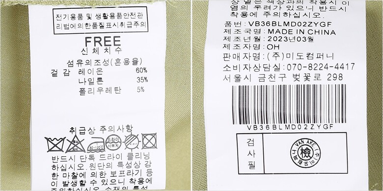 | 6. 세탁방법 및 취급시 주의사항 | 상세페이지 참조 |