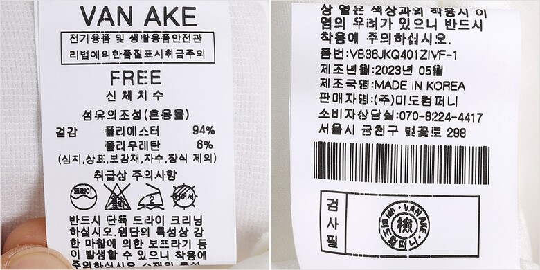 | 6. 세탁방법 및 취급시 주의사항 | 상세페이지 참조 |