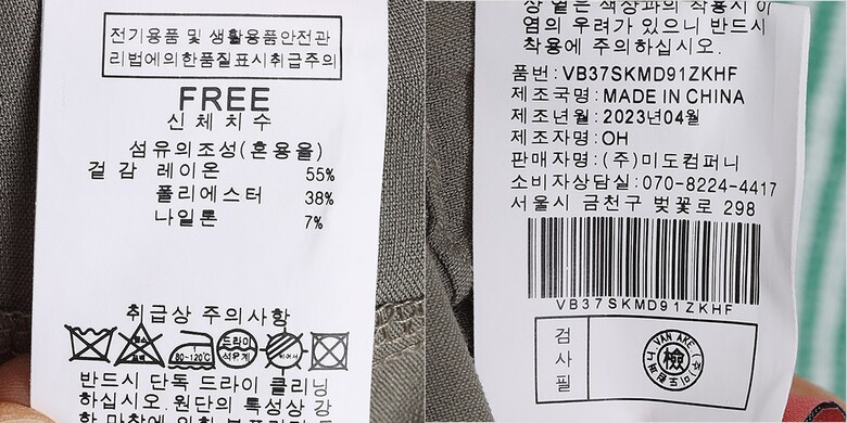 | 1. 제품 소재 (섬유의 조성 또는 혼용률을 백분율로 표시, 기능성인 경우 성적서 또는 허가서) | 겉감-폴리에스터38% 나일론7% 레이온55% |