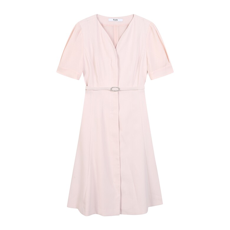 [에꼴드파리] 브이넥 벨티드 반팔원피스_PB26WOA022A
