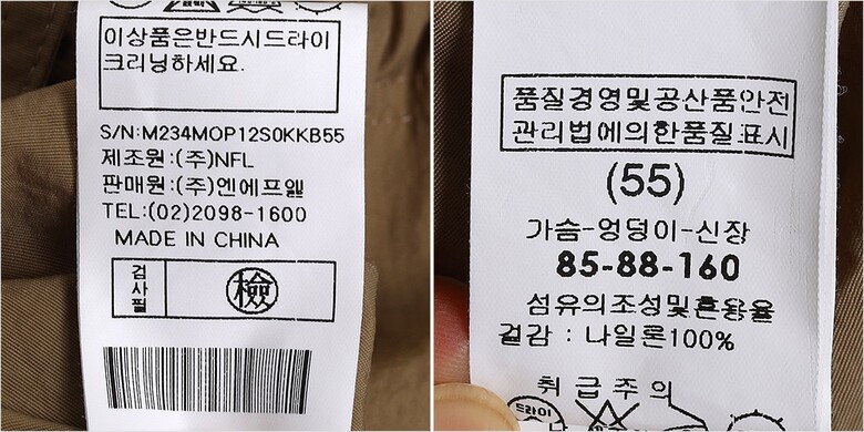 | 6. 세탁방법 및 취급시 주의사항 | 상세페이지 참조 |