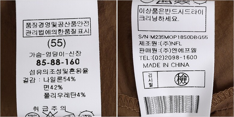 | 1. 제품 소재 (섬유의 조성 또는 혼용률을 백분율로 표시, 기능성인 경우 성적서 또는 허가서) | 겉감-면42% 폴리우레탄4% 나일론54% |
