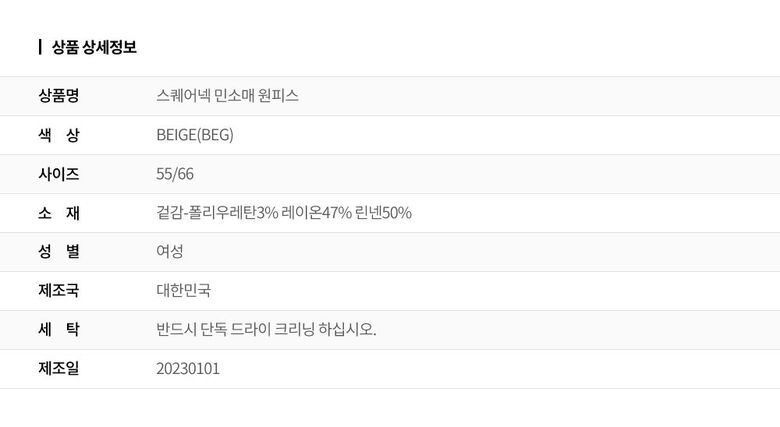 | 2. 색상 | 색상:BEIGE(BEG) |