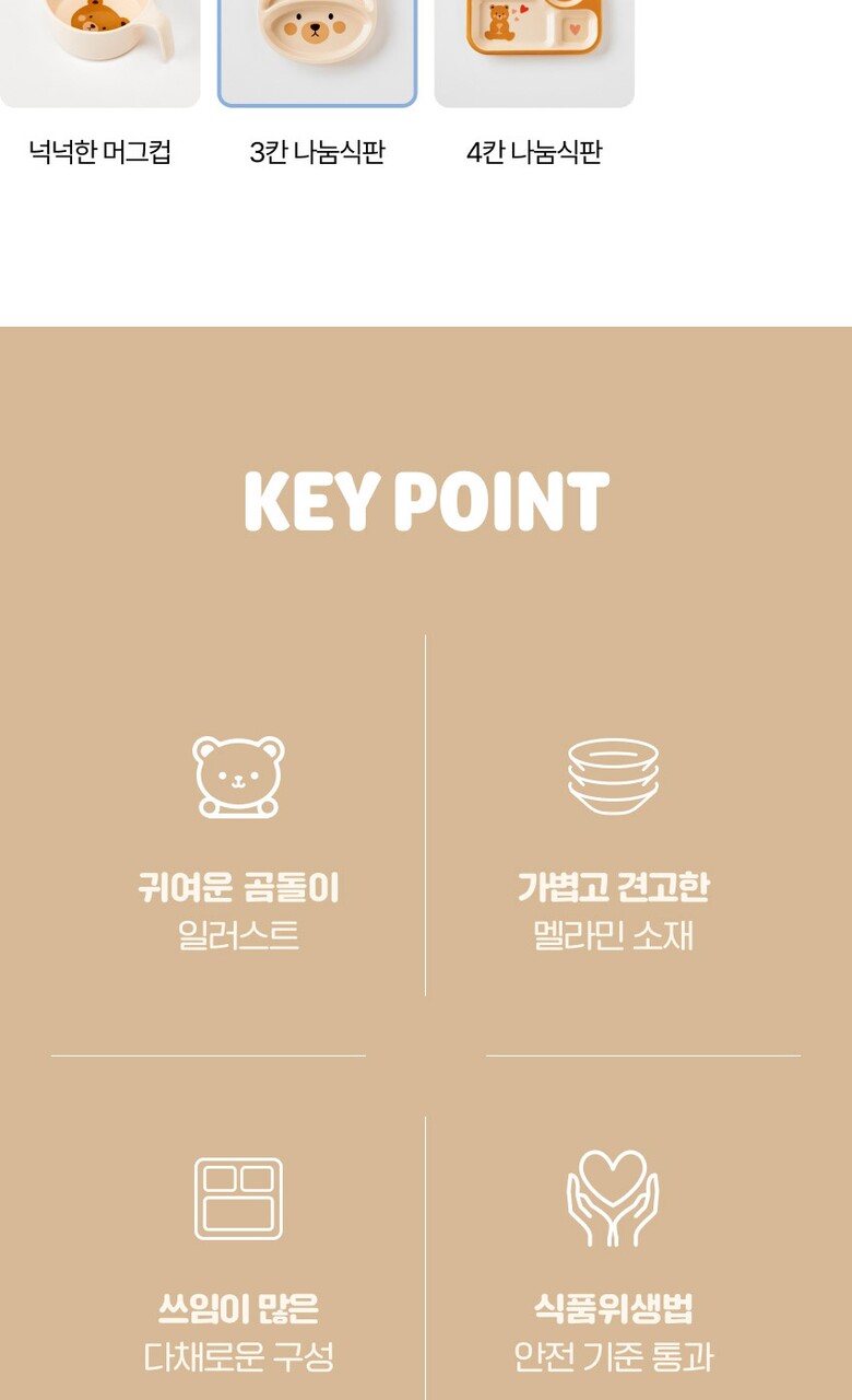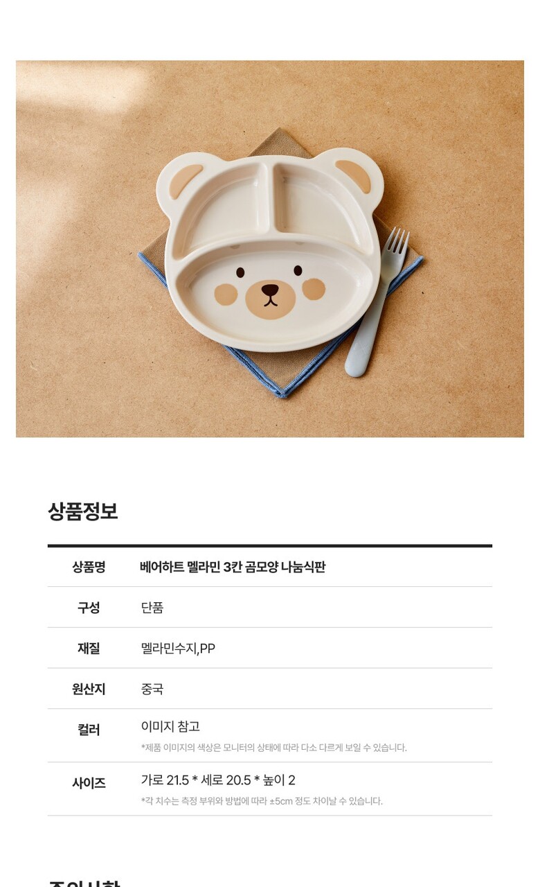 모던하우스 베어하트 멜라민 3칸 곰모양 나눔식판 KI0125034