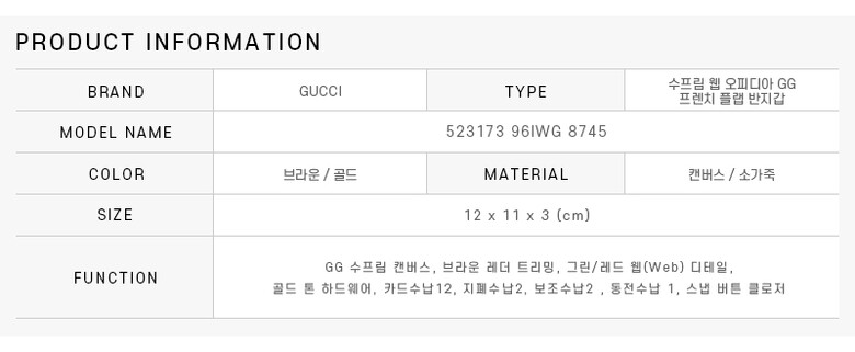 [명품] 구찌 523173 96IWG 8745 수프림 웹 오피디아 GG 프렌치 플랩 반지갑