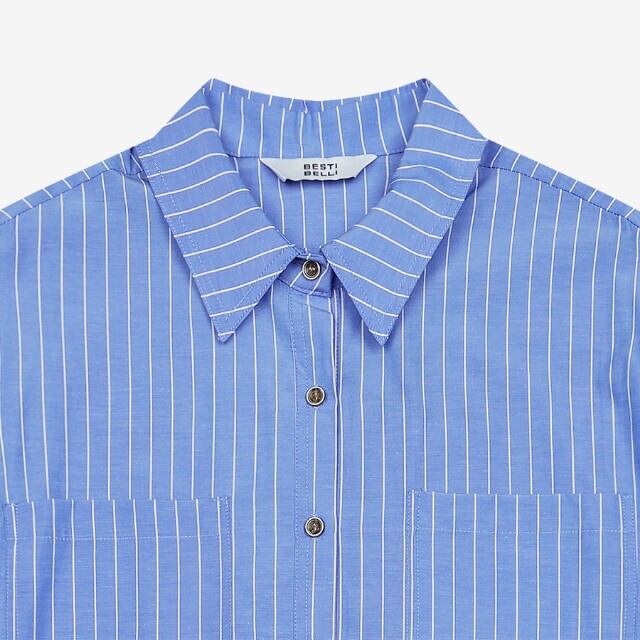 베스띠벨리 오버핏 스트라이프 포켓 셔츠블라우스BKBAF74080