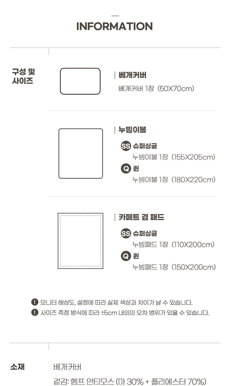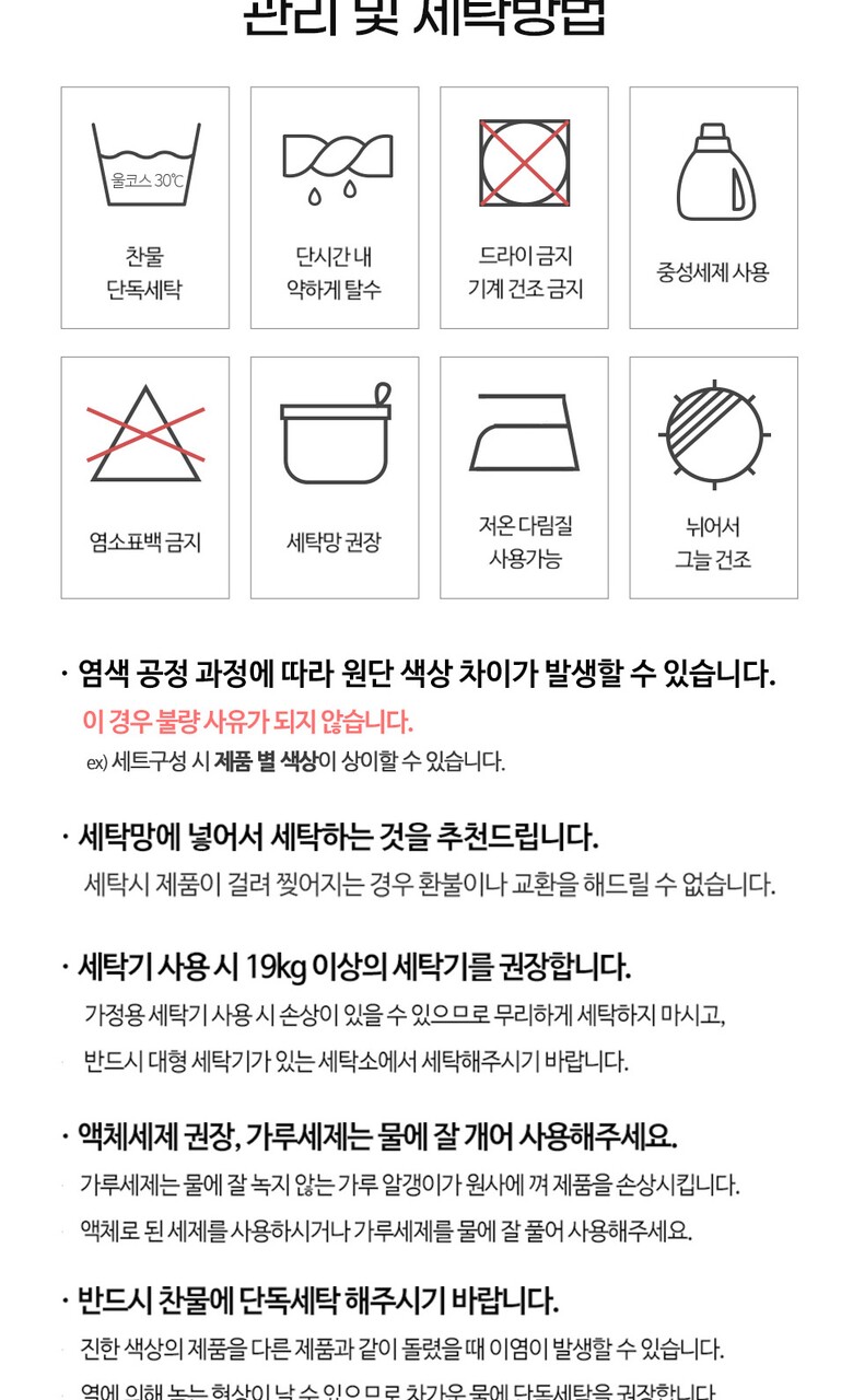 7. 세탁방법 및 취급시 주의사항 | (상품기본정보) 원산지 |