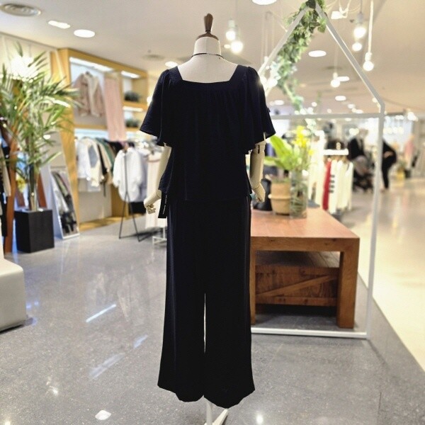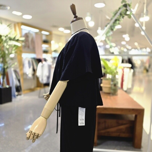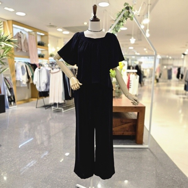 치수 : FREE(55~66) 블라우스 - 총기장:45CM,소매길이:18CM,가슴단품:52CM / 팬츠-총기장:95CM,허리단면:34CM