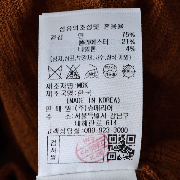 제품소재 : 면75%폴리에스터21%나일론4%