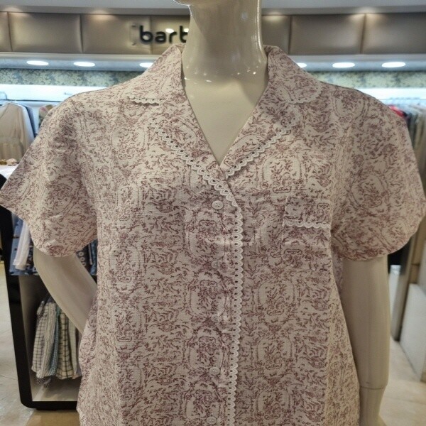 바바라 여성 반팔 상의 6부 바지 세트 잠옷