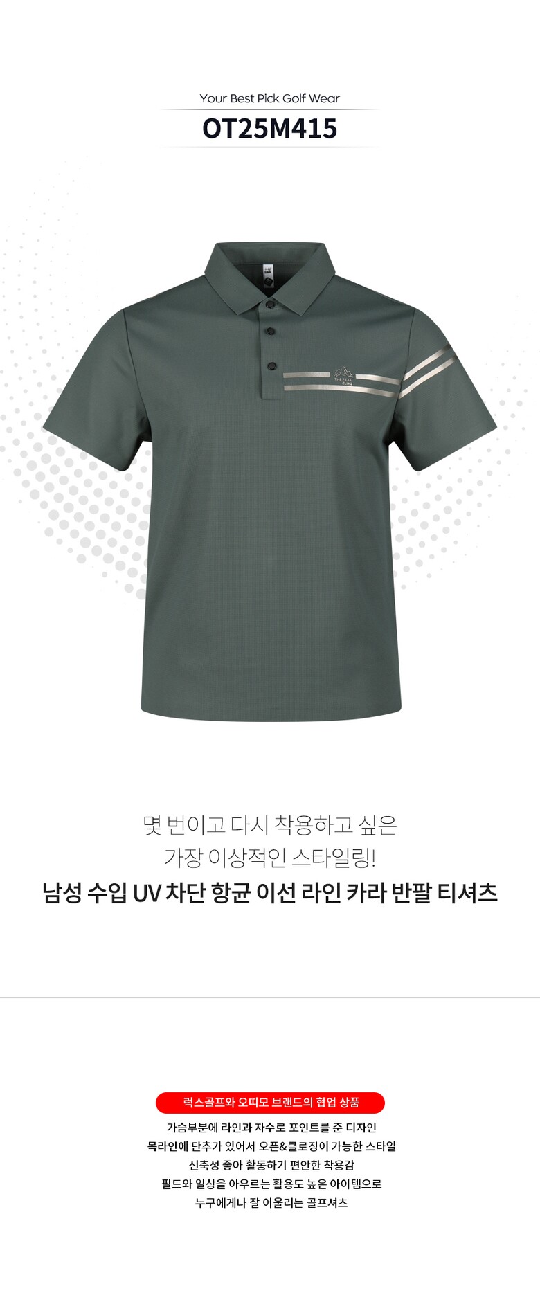 럭스골프 남성 수입 UV 차단 항균 이선 라인 카라 반팔 티셔츠 OT25M415
